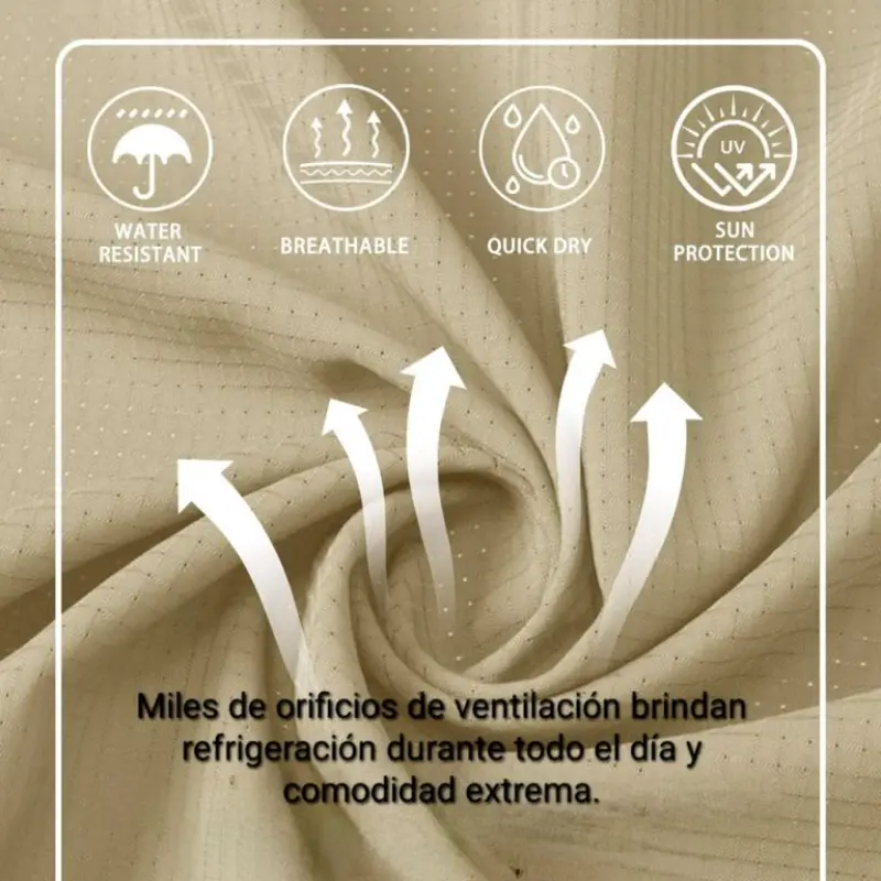 Su tejido transpirable y de secado rápido mantiene tu piel fresca y seca, incluso en los días más calurosos. Además, su diseño sin arrugas y elástico garantiza que luzcas siempre impecable, ideal para viajes y actividades exigentes.