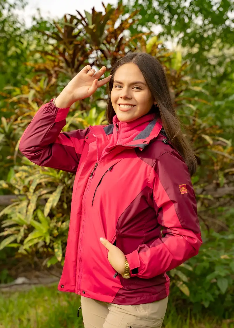 Diseñada para la mujer que ama la aventura sin renunciar al estilo, esta Chaqueta 3 en 1 ofrece una solución completa para cualquier clima. Con su diseño modular, puedes utilizarla de tres maneras: como chaqueta exterior impermeable, como forro térmico independiente, o como una combinación de ambas para máxima protección.