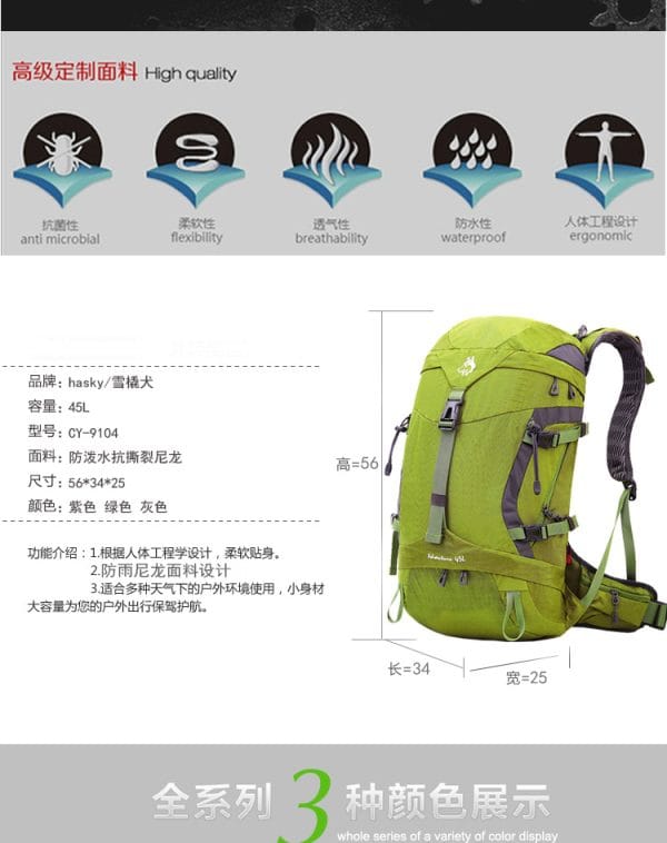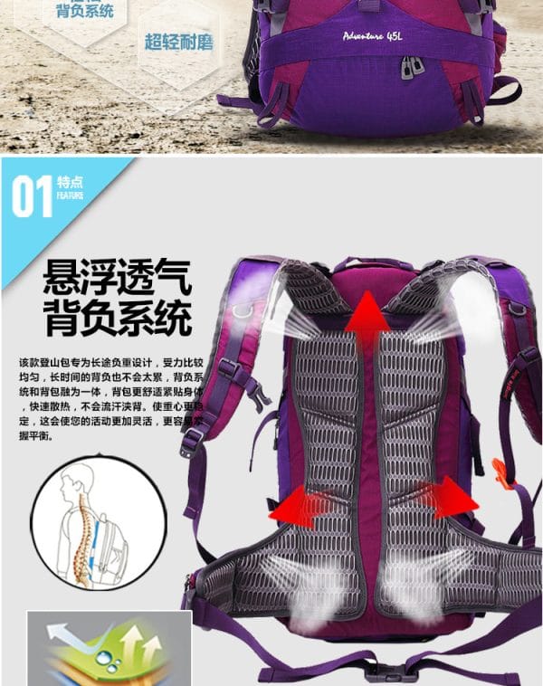 - Capacidad 45L para aventuras al aire libre:Espacioso con 45L, ideal para montañismo y actividades al aire libre.
